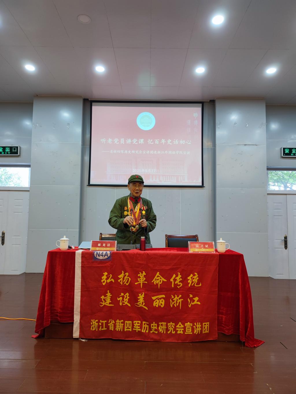 随着党史学习教育扎实深入开展,5月27日,我院联合中文学院、图书馆,邀请浙江省新四军历史研究会宣讲团进校宣讲党课。浙江省新四军历史研究会宣讲团常务副团长程宇航,92岁八路军老党员郝龙清分别作两场讲座,澳门六合彩高手