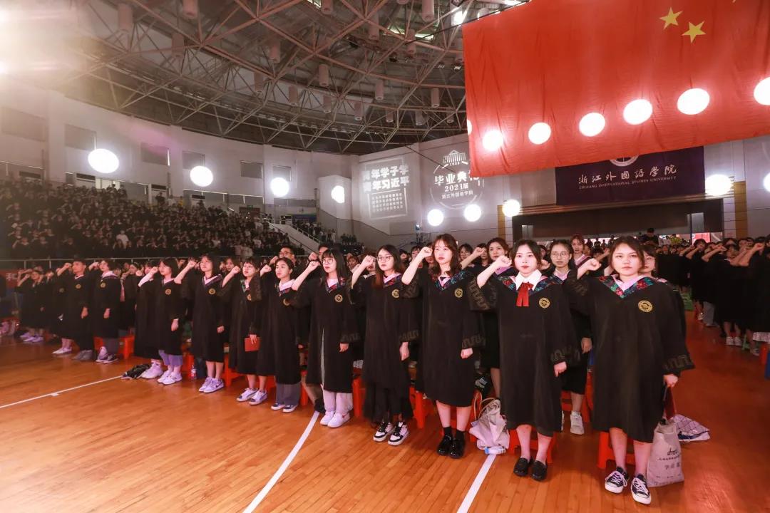 6月17日上午,浙江外国语学院于行健馆举行2021届毕业典礼。全校领导、全体教师及行政人员、2021届毕业生共同参加本次典礼。