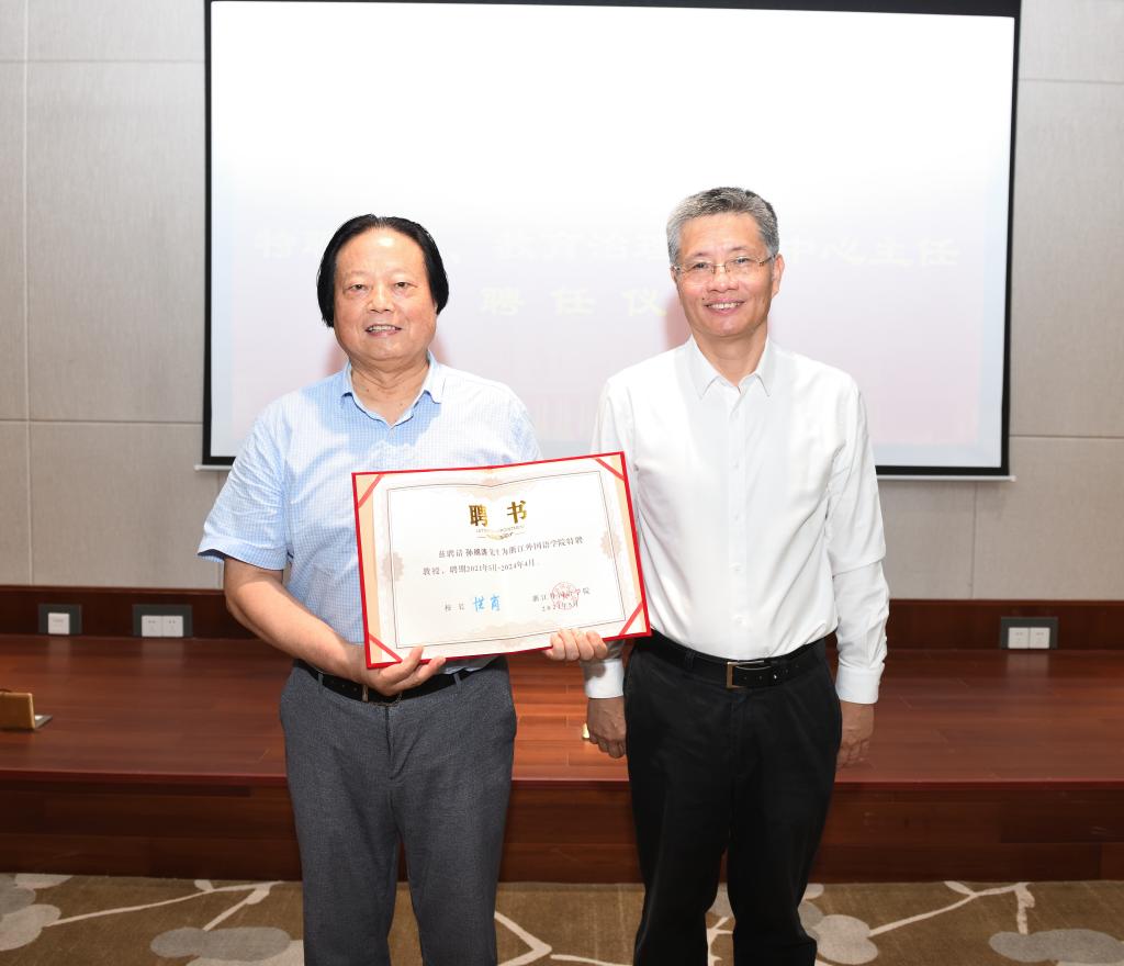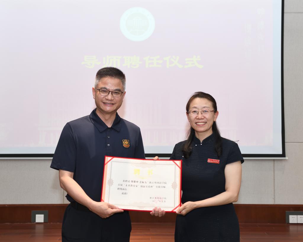 宣勇为国家教育部教育政策研究与法制建设司咨询专家孙绵涛教授颁发浙江外国语学院特聘教授、教育治理研究中心主任聘书。孙绵涛对我校的重视和支持表示感谢,他指出“四个面向”的培养体系和课程体系架构非常严谨深刻,具有普世意义。今后工作中将不负重托,尽己之力建设好教育治理研究中心,做好学习员、服务员和研究员,把中心办出浙江特色,在中国有一定的影响,在国际上有一定发言权的教育智库和重点教育研究基地,为实验班贡献全部智慧和力量。