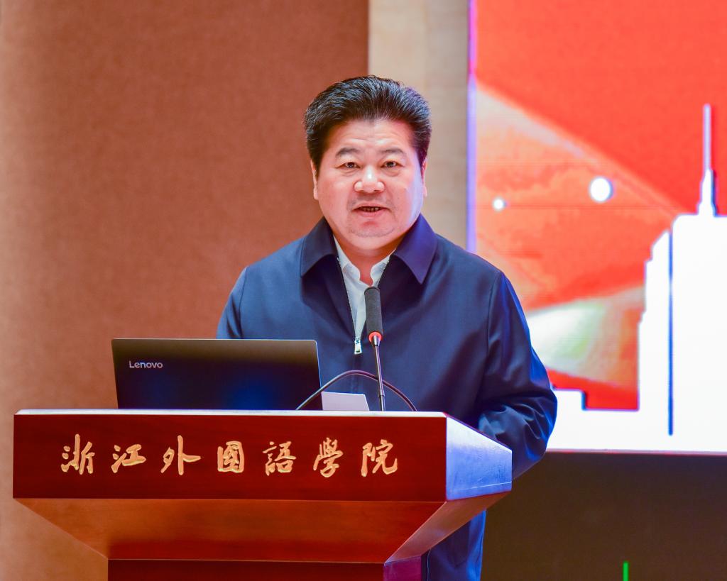 张环宙在主持时表示,党的十九届五中全会明确了“建设高质量教育体系”的政策导向和目标任务,在此背景下,在浙江外国语学院教育治理研究中心即将迎来一周岁生日之际,学校主办本次会议具有重要意义。期待本次高峰论坛能结出累累硕果,为推进国家教育治理体系和治理能力现代化贡献力量。也希望未来在大家的共同努力和支持下,教育治理研究中心能够越办越好,为服务国家治理体系和治理能力现代化、服务浙江“重要窗口”建设作出更大贡献!
