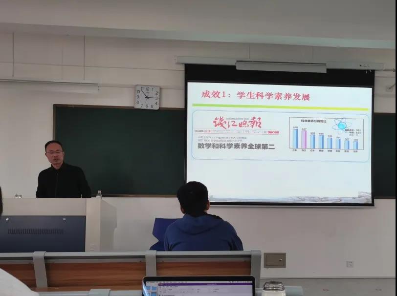 师生作“浙江省综合科学课程建设的实践探索”的专题报告。