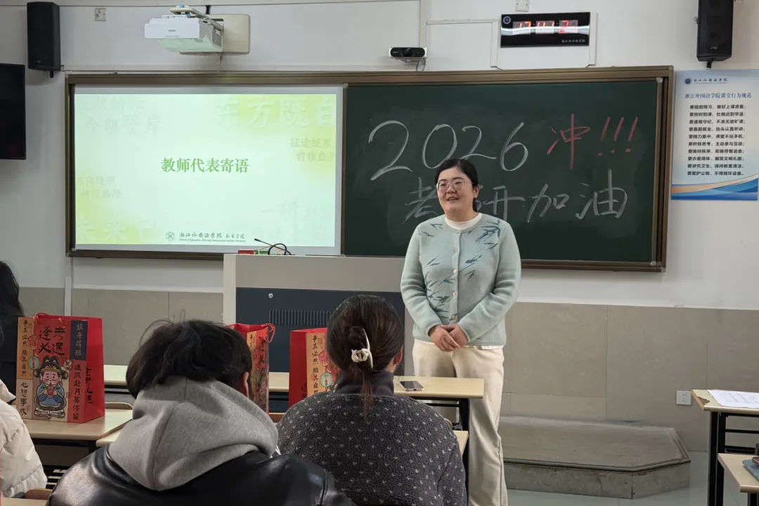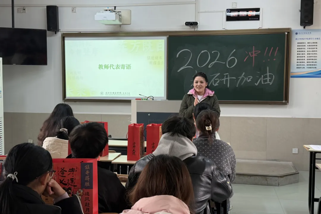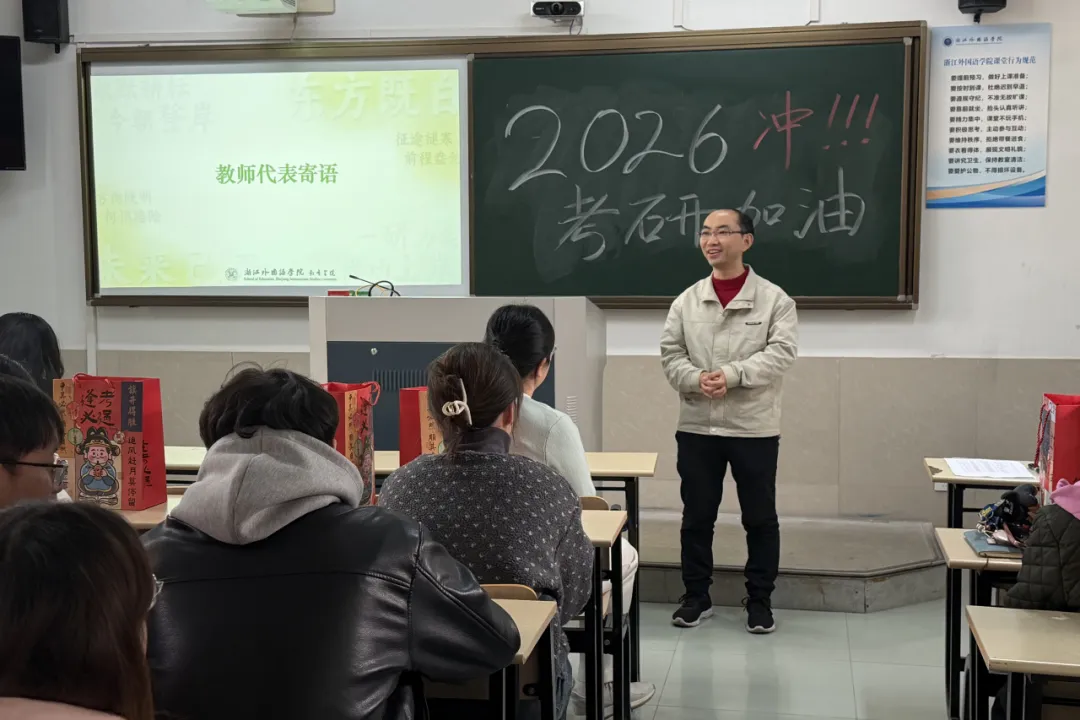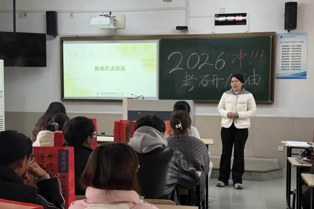 举办考研加油会,党委副书记李娟、毕业班班主任、辅导员等参会,为考研学子送上诚挚的祝福。