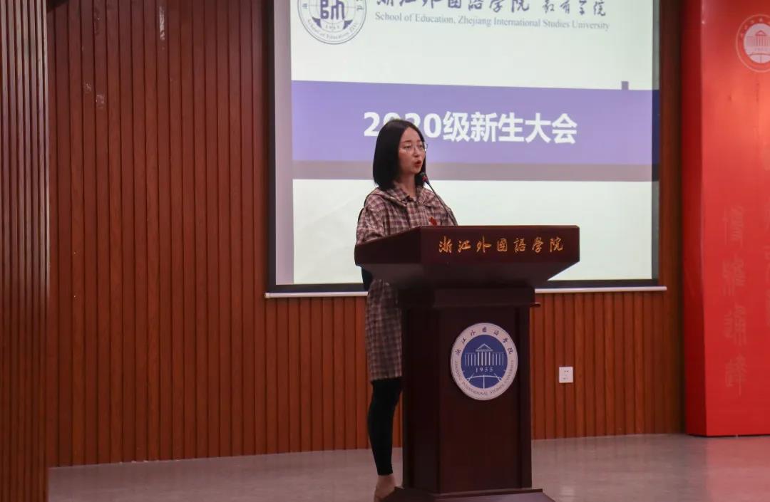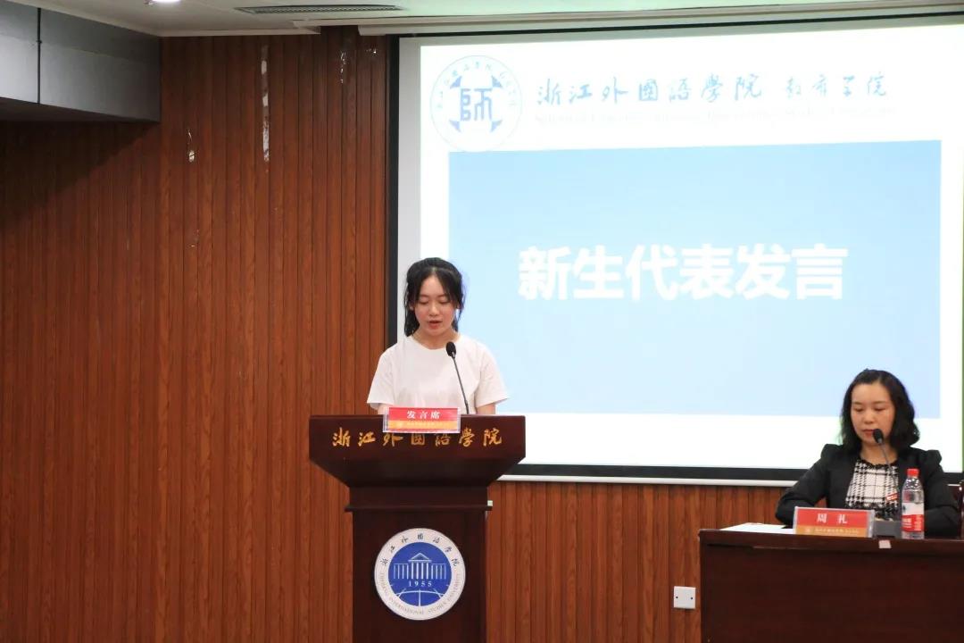 20小教2班的吴梦丹作为新生代表发言,与大家分享了她对大学的憧憬和期待。从在教师家庭的熏陶下毅然决定成为一名师范生到收到浙江外国语学院录取通知书,她充满着成为有理想信念的优秀教师的信心与决心。