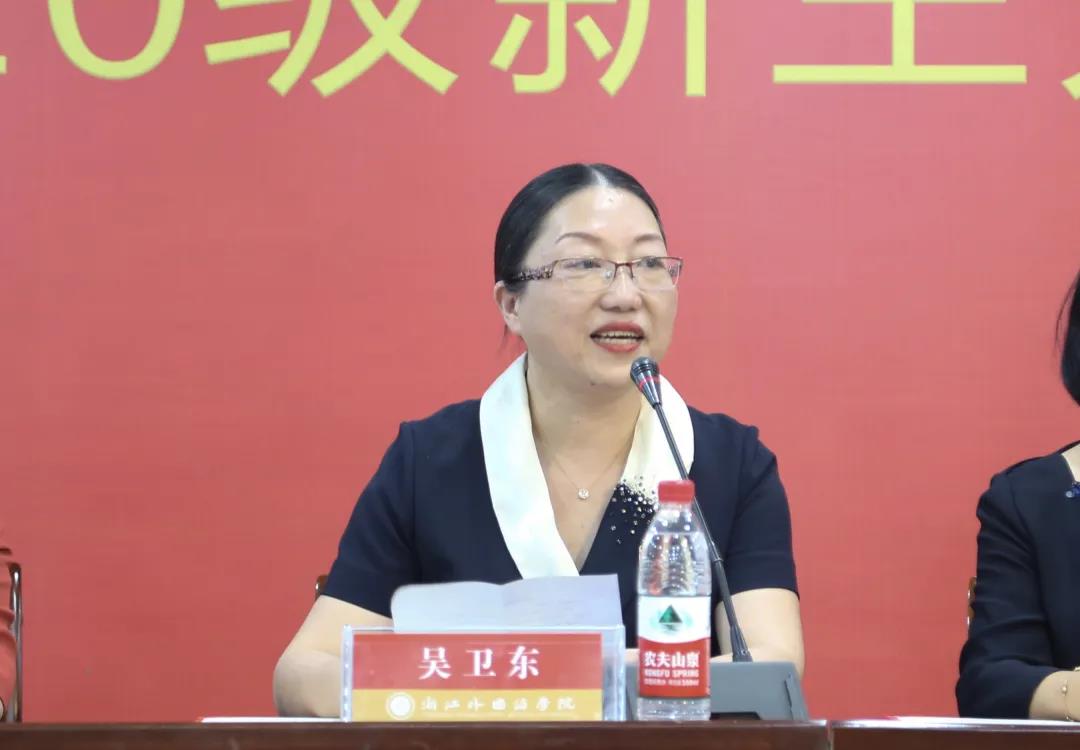院长吴卫东对2020级新生加入温暖的教院大家庭表示热烈的欢迎,并向大家阐述了“大学生”这一词三字的内涵。“大”由一个人和一横组成,从它的意象来看,即“有责任、有担当”;“学”,对一个未来的公民而言,意味着学会求知、学会做事、学会共处、学会成为真实的自己,作为未来的教师而言,“一践行,三学会”是大学四年的学习目标;“生”,意为不断成长、不断自我超越。引用梁晓声先生的话语,吴院长对新生们提出了期待,她希望同学们可以成为真正有文化的人。最后,她祝愿所有新生在大四年里学有所成、学有所获。