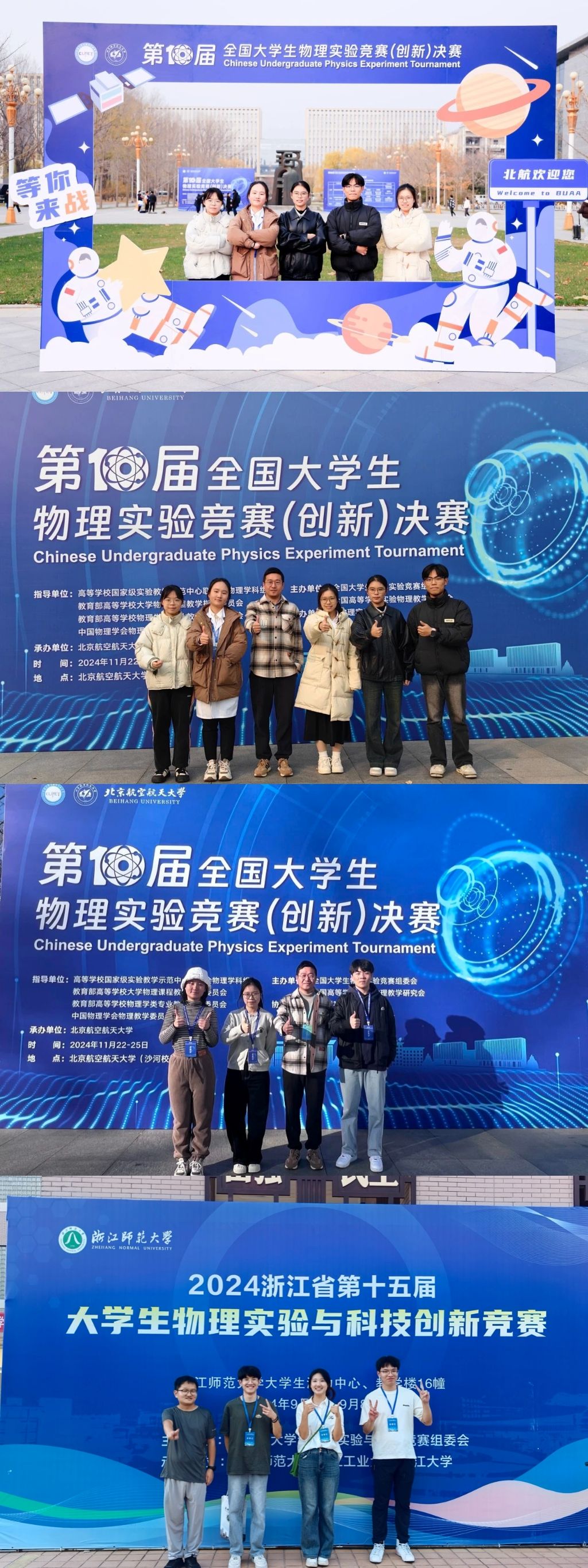 11月24日,第十届全国大学生物理实验竞赛(创新)决赛在北京航空航天大学落下帷幕。教院学子凭借扎实的专业素质、出色的创新能力和稳定的临场发挥,在赛事中脱颖而出,荣获一等奖一项,二等奖三项,优秀奖一项,浙江外国语学院获优秀组织奖。