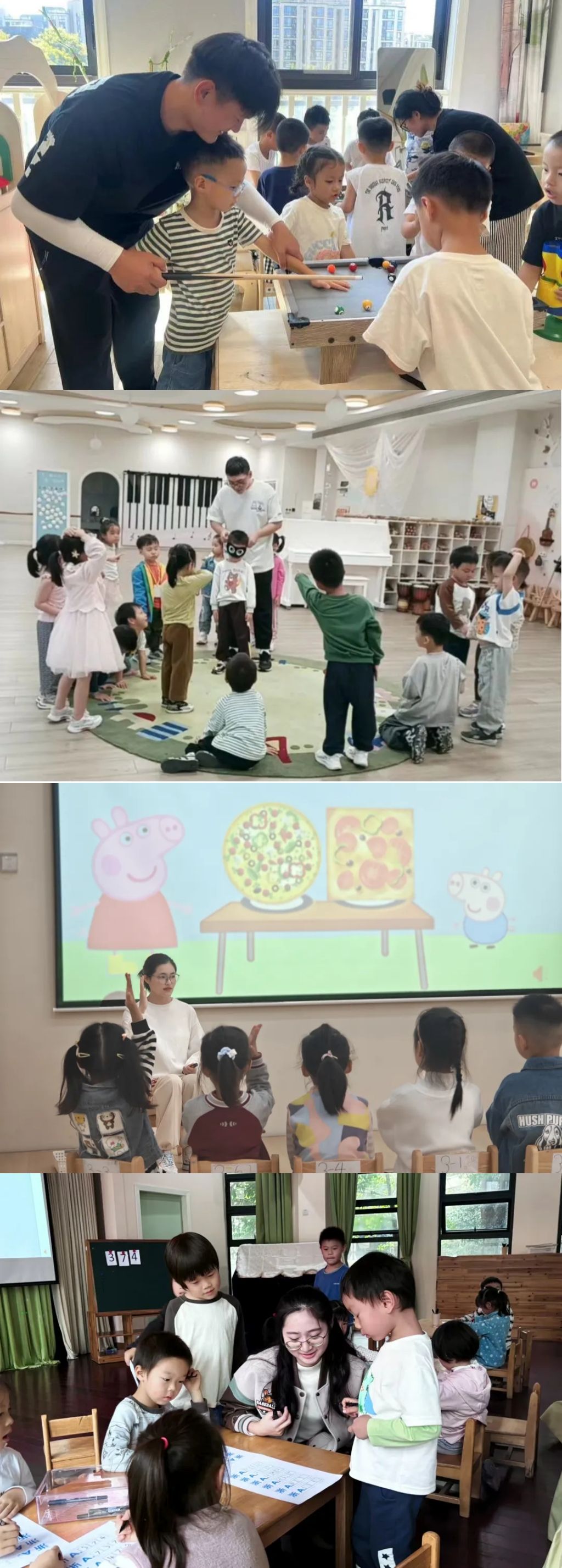 在实习期间,同学们深入幼儿园班级,积极参与日常教学和管理工作。从杭州市云溪幼儿园的创意环境布置到钱江第二幼儿园的多彩课程设计,再到留下幼儿园留和园区的观察记录与课程磨课,实习生们以热情和专业投入到教育实践中。通过与孩子们的互动,他们不仅提升了教学能力,也更加熟悉幼儿心理发展特点。实习的历程充满挑战与收获,同学们从陌生到熟悉,从紧张到自信,逐步成长为能够独当一面的幼教新人。