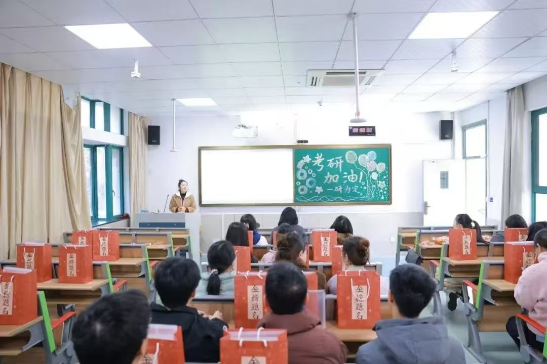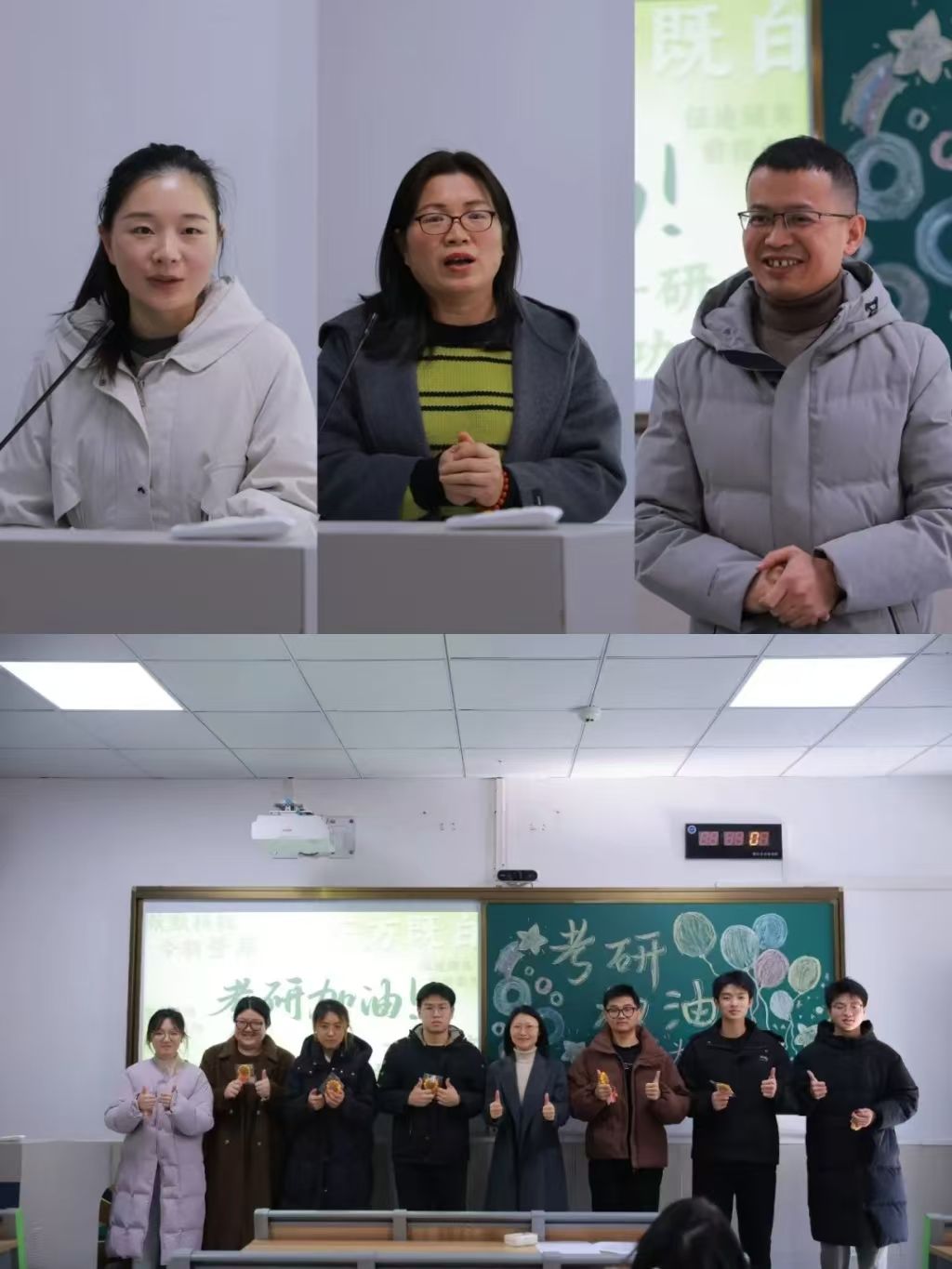 于12月16日在望C210举办2025届毕业生考研加油会,党委副书记李娟、各系主任和老师、学工办和考研学生参加。