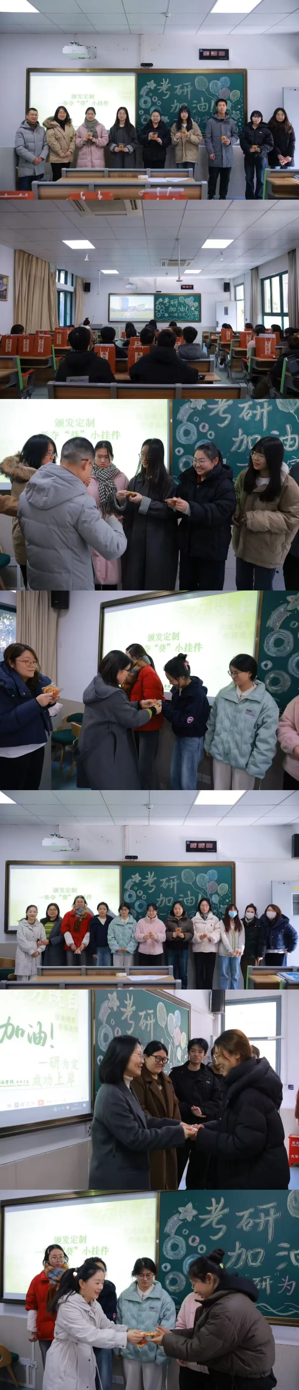 在场同学们也观看了2024届学长学姐们的考研加油视频,感受到来自他们满满的祝福和暖暖的关爱,同时老师们也为同学们送上定制的一举夺“葵”挂件,预祝同学们能够在研究生考试中取得良好成绩。