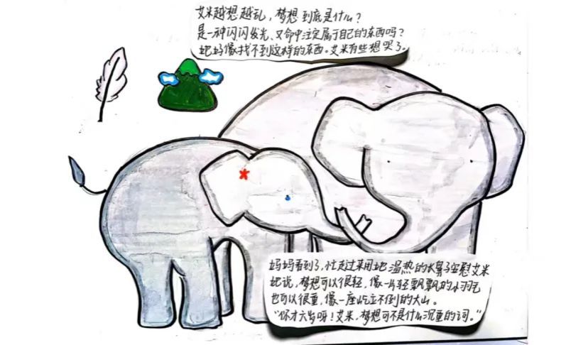 沈欣瑶的《艾米的小梦想》充满诗意与轻盈感。图画书制作契合儿童特质,充分运用文图互动形式,比如表现小象梦想时,文字与绘画叙述不同,让故事更有趣;结尾“做一只被天空感动的大象”既出人意料,又贴合儿童心性,是优秀的图画书创作。