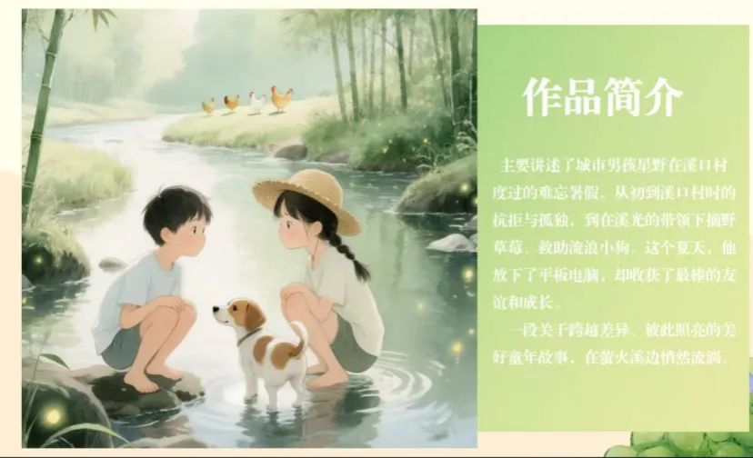 《溪边的“小尾巴”》是一首关于成长与联结的田园诗。城市少年星野的溪口村暑假,是从对乡野的抗拒到被萤火溪唤醒感知的蜕变之旅。他与溪光在救助小狗、分享秘密的点滴中,让城乡的差异晕染成友爱的底色;在放下平板、拥抱自然的选择里,找回了数字时代遗失的童真本真。故事以细腻笔触织就成长图谱,于乡野风致中藏着对现代童年的叩问,是献给孩子与成人的童心诗笺。