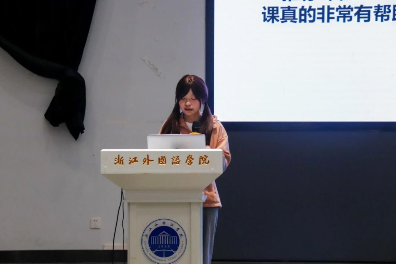 24小教4班的熊思甜学姐从“将英语视为‘工具+文化载体’、用英文思维替代中式翻译、以‘兴趣+小闭环’模式实现长期驱动”三个方面,系统地分享了她的学习经验。她从听力抓信号、阅读找匹配、写译提逻辑等方面分享了实用技巧,并鼓励新生们以兴趣为导向,借助短视频、歌曲、影视等多元载体,构建可持续的学习闭环,真正实现从“被动应试”到“主动应用”的转变。
