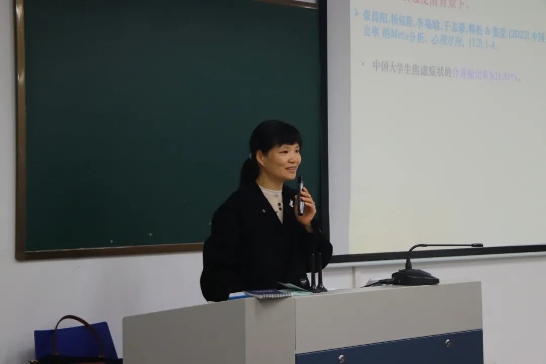 讲座上,周丽华老师以教育部《高等学校学生心理健康教育指导纲要》为切入点,通过多项调研数据,直观呈现了大学生心理健康状况,其中也包括毕业生在就业、升学等方面的心理压力与情绪困扰,指出“心理委员和寝室长已经成为高校朋辈辅导中的主力”这一角色变迁。