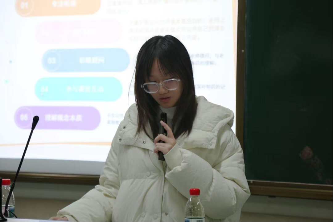 24数学1班的徐如昇学姐从课前、课中、课后三个阶段,分享了数学分析的完整学习方法。她指出,课前要明确长短期学习目标、研读课程大纲,结合宋浩等老师的网课预习;课中需专注听讲、理解概念和定理的本质;课后要通过复习归纳、练习真题来内化知识。她还强调,数学分析知识点关联性强,基础是推导证明题的关键。