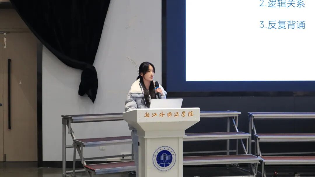 24小教1班的徐榛翊学姐带来了大一综英期末考试通关指南的实用分享。她先拆解了综英期末的考试题型,包含阅读理解、完形填空、长句匹配、写作和口语。在应对策略上,她针对不同题型给出小技巧:口语要抓关键词串联句子,作文结合万能模板,长句匹配抓关键词等。考场发挥要适应电脑答题、先做课内完形填空,同时保持自信,把控答题节奏。